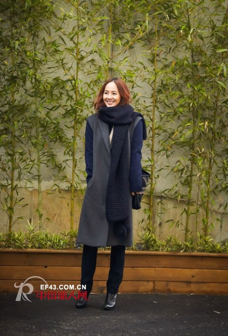 深色其实是一种十分好的颜色,又是长款大衣,它可以使你变得苗条变得成熟。深灰色给人很端正的感觉。