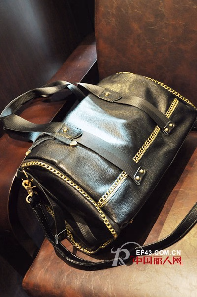 PU有软度有纹路,金色链条的设计有点小霸气, 街拍一般都会有类似的包包出现, 被称为百搭款型, 可手提,可肩挎,有拉链封口,可装A4大小的书籍。