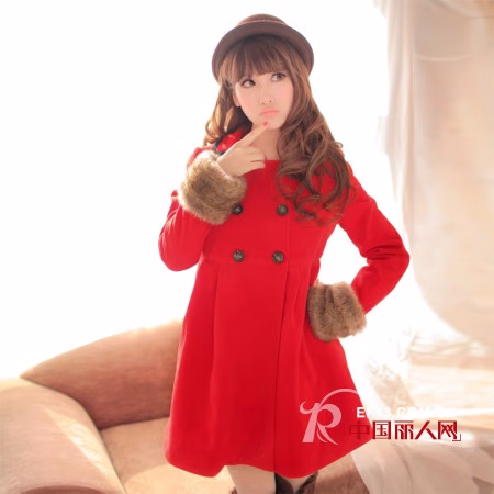 毛领毛呢大衣,非常甜美淑女的款式,可爱的毛领和毛毛袖口保暖又卖萌,毛领可以拆卸。