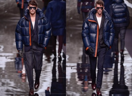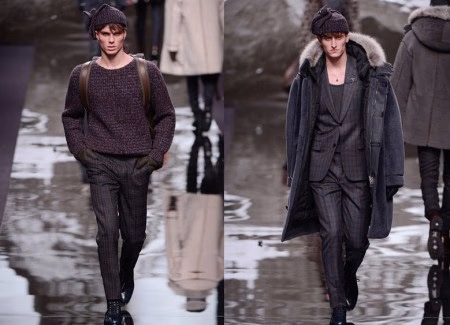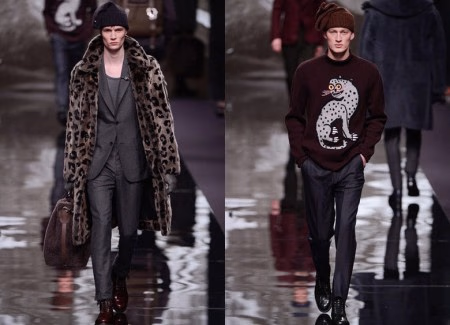 Kim Jones用路易威登(Louis Vuitton)2013秋冬男装带领路易威登男士攀登世界最高峰喜马拉雅山脉,徒步穿越不丹云森林,世界上唯一一个在老虎和雪豹十字路径。我看设计师是被雪豹迷住了,从秀场的第一个LOOK开始,我们就看到了羊绒外套上编织着雪豹斑点的暗纹,以及还来设计师索性将一只经过卡通化的雪豹赤裸裸地钉在了羊绒衫之上,十分诙谐。