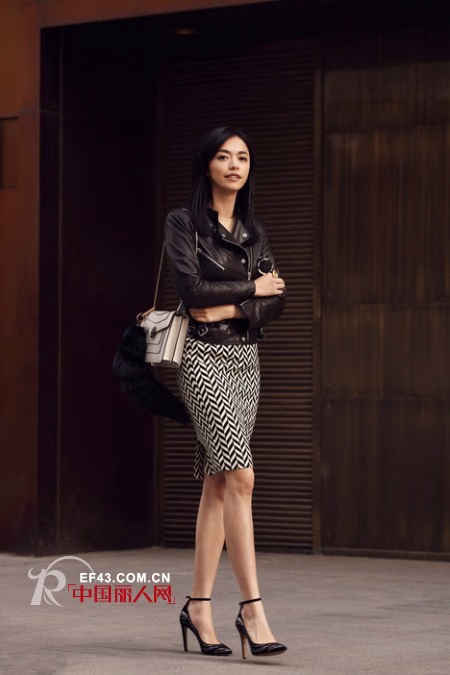 姚晨身着Sandro机车款皮夹克搭配Rue-du-Mail几何纹样古董铅笔裙,Bulgari乳白色挎包上配以Edition-10-by-MO&Co。毛状装饰,Isabel-Marent系踝高跟鞋既时髦又不突兀,懂得突出造型重点才是制胜的不二法则,手指上的金色lara-Bohinc环状戒指让搭配感更加完整。