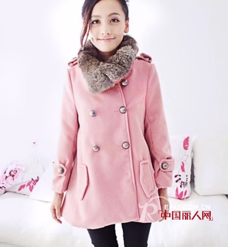 淑女中不乏高贵华丽气质的一款毛呢大衣外套,双排扣点缀出知性风范,领子为两穿设计,造型独特,甜美可爱。结合了风衣与娃娃裙两种风格特质,中长款宽松版型,有小收腰处理,上身效果比较乖巧的感觉。有米白和皮红两个颜色,适合深秋及冬季穿着。
