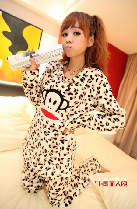 冬天很温暖的款哦,珊瑚绒的质感超舒服的,大嘴猴的图案装饰相当精心呢,满满的豹纹,可爱又性感,是必备款的家居服!