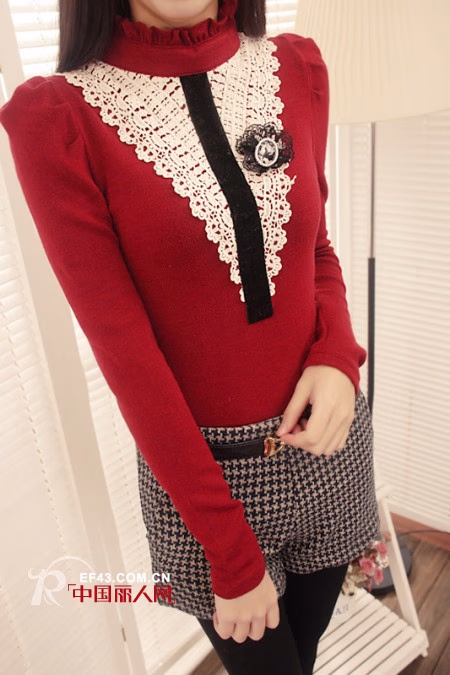 复古百搭 蕾丝镶钻半高领 泡泡袖 针织毛衣打底衫,用了收紧的设计,让腰部的线条更加的纤细立体,具有时尚感。