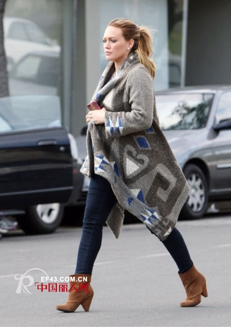 大气的几何图案针织毛衣非常适合气场强大的MM,宽松的款式有着风衣的风范,搭配紧腿裤装打造至IN的廓形。