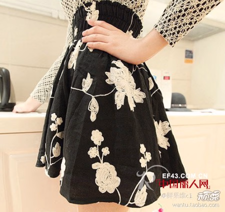 刺绣花朵小黑裙,立体刺绣花朵,高腰款式,蓬蓬的裙摆设计,很喜爱