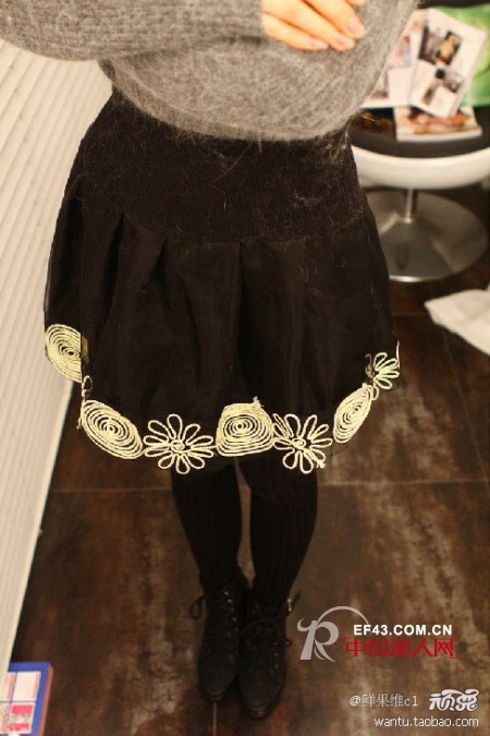 花朵短裙,毛呢面料,立体花朵,钉珠点缀,高腰款,显腿长
