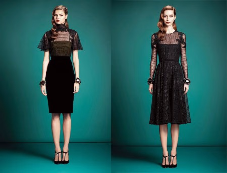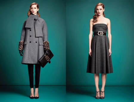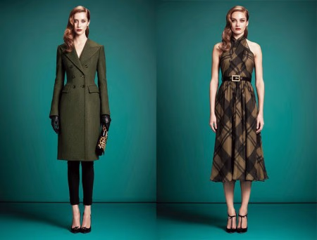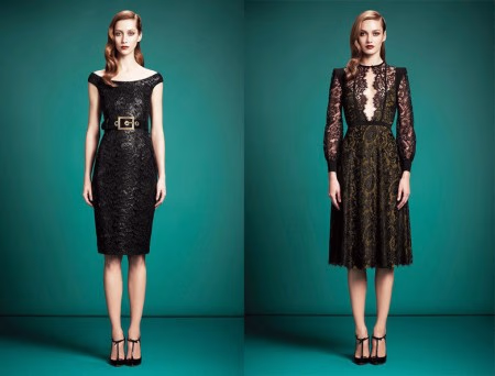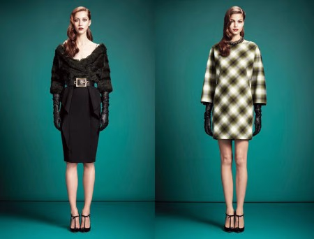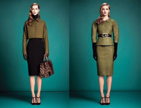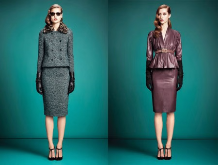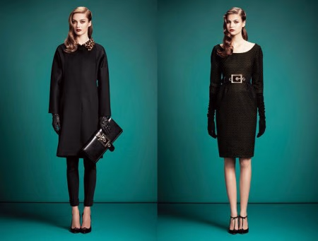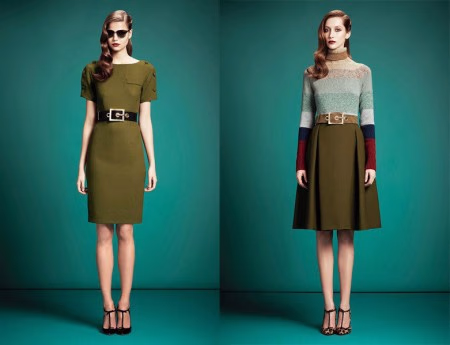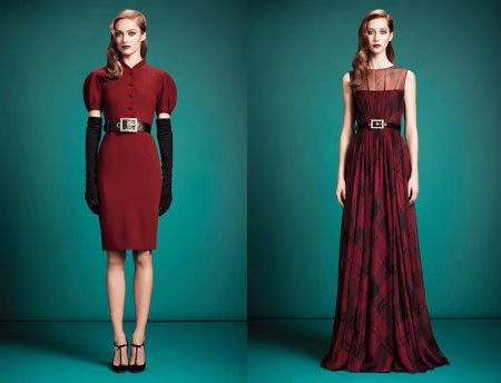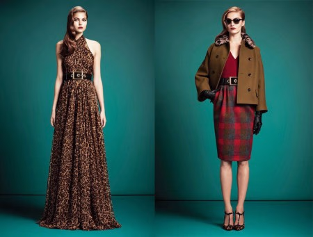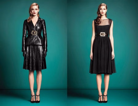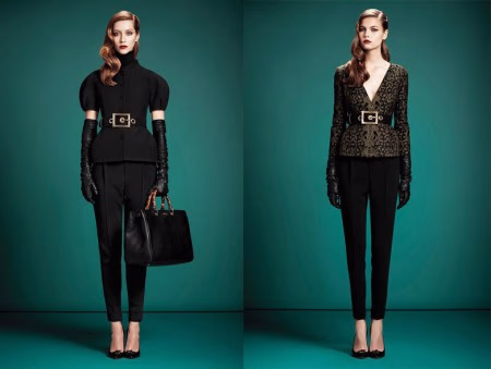 由超模Karmen Pedaru和Alana Zimmer领衔演绎的Gucci 2013早秋系列女装,是创意总监、准妈妈Frida Giannini产前的倒数第二个系列。灯笼袖+皮质长手套打扮的金发红唇女郎,给人精致复古的第一印象;提高的腰线、收腰的剪裁,即使没有大面积的裸露也显得古驰女郎性感优雅;竹节手柄包包、装饰主义黑金宽腰带、性感T带鞋、豹纹印花方形包等配饰,将以高收腰廓形为主打的本季Gucci女装造型点缀得更为优雅迷人。