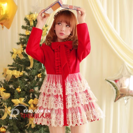 亮丽的大红色仿若是一抹青春的气息注入这个略渐萧索的冬季,带来了丰盈的活力与美好。 红色呢料与纯色蕾丝刺绣相结合,碰撞出一股典雅高贵的迷人韵味,宛似罗马假日里贪玩的公主,降临人间的天使般,即使身在人潮涌动的街道,也无法掩饰周身的高贵气质。