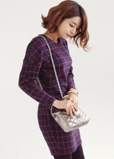 格纹该给人非常复古的感觉,包臀设计又多了一点性感的味道,冬季搭配长款大衣和链条包肯定会潮感十足哦。