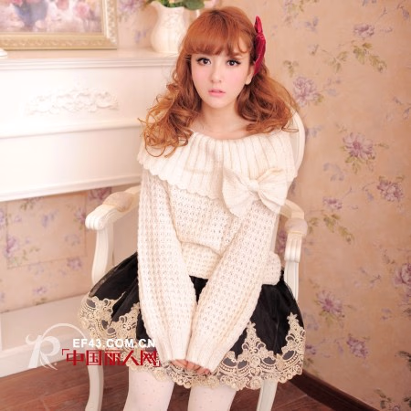 甜美层层木耳边蕾丝绣花网透视露肩毛衣,领子部分做的很精致滴,贴身穿着,柔软保暖,太美了。