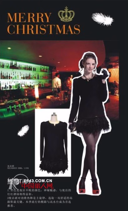 【时尚派对】心仪合作公司的男孩,但因平日太过普通没能引起他的注意?在即将举办的圣诞派对上想让自己改头换面俘获他的心。优雅高贵的风格最容易引起他的注意,不裸露不做作是整体造型的关键,轻盈的羽毛或灵动的荷叶边都能营造出浪漫神秘的效果。