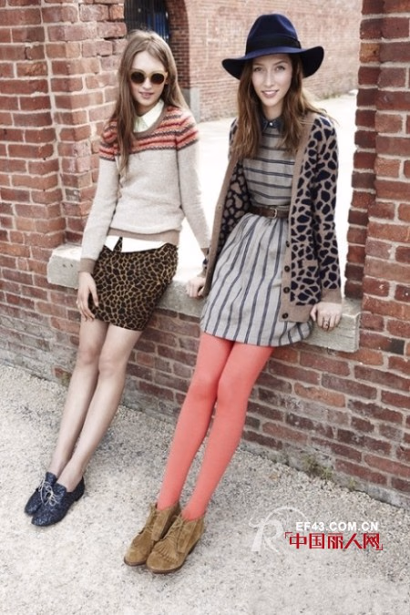 石头裂纹的包臀裙和针织开衫MIX不同的单品展现出不同的风格,复古毛衫复古中性,条纹连衣裙则多了一丝女人的味道。