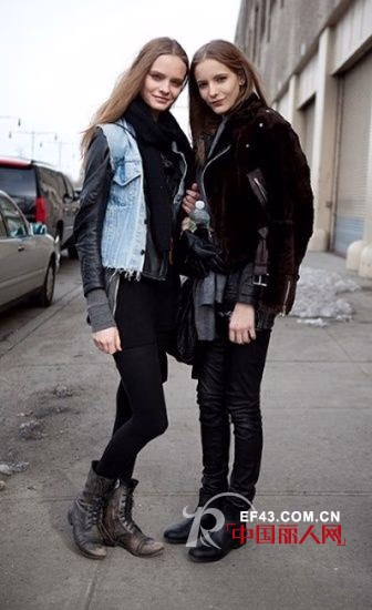 欧美风闺蜜街头秀非常养眼,总是给人非常随意的感觉,牛仔拼接外套和皮草外套搭不同单品都展现了不同效果的层次感哦。