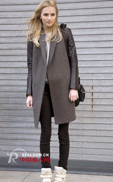 玩味拼接潮流来袭,衣身和袖子不同材质的拼接彰显立体感,搭配紧腿打底裤,拉长身材比例,即使不穿高跟鞋也显得很高挑哦。