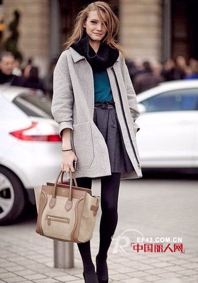 圆肩的廓形、宽松的袖口、大大的口袋无疑都是这件大衣的亮点,搭配高腰短裙,完美分割身材比例,缔造纤细麻杆腿。