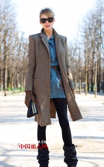 这种超长款的大衣比较适合身材高挑的It Girl们,内搭牛仔色连身裙,休闲随意当中展现大牌风范。