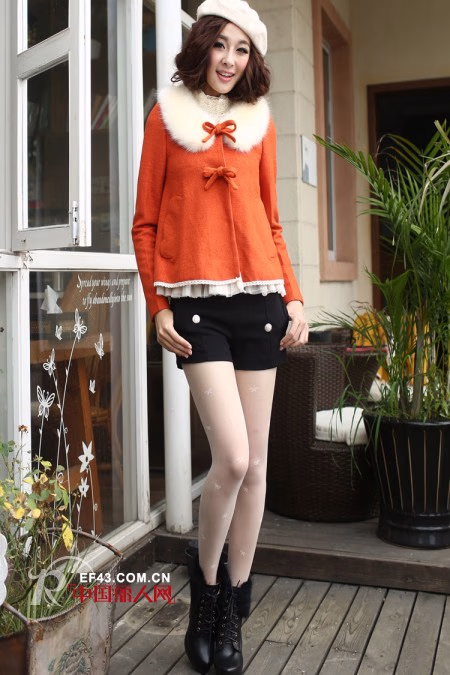 优雅毛领时尚华贵的形象的代表,同时将MM们可爱的形象展现出来,利用绳结大蝴蝶结代替纽扣的功能,其形式新颖独特,更能够表现可爱一面,使用也方便。