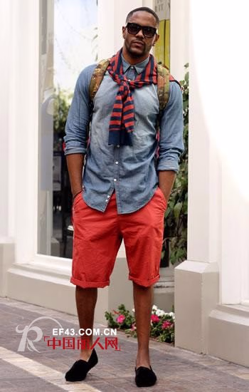 牛仔衬衫的简单白搭正是体现于此,不会过于的挑剔和他搭配的其他单品,因此红色短裤就是更能夺人眼球的最佳伴侣了。