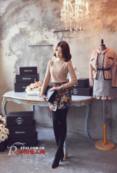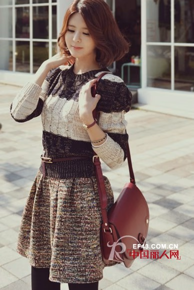 象牙白与深咖啡色色彩搭配犹如卡布奇诺般的唯美,胸前的粗麻绳花纹编织复古时尚,搭配复古短裙与公文包,让时尚感up up!