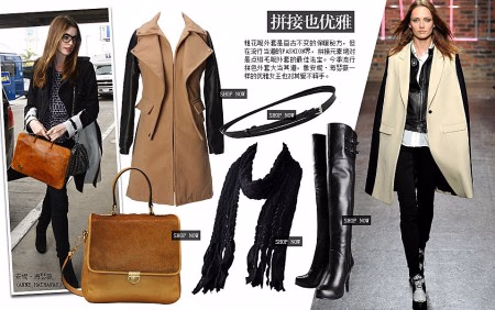毛呢+皮质拼接廓形外套完美修饰身材,是今年冬季街头的惹眼单品,搭配紧腿裤,宽松有致的装扮怎能不美呢?