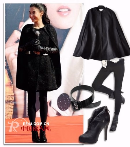 连张柏芝也如此青睐斗篷,可见还是有非凡魅力的,身披斗篷,手着长款机车皮手套,强大气场Hold住秋冬街头。