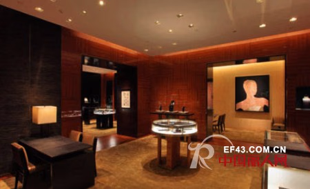 进入其中,整体空间温馨华丽,为客人带来私密又舒适的尊贵体验,相互联通的男士及女士腕表区,珠宝区以及顶级珠宝贵宾室错落有致,手工地毯与订制家具点缀其中,温暖的灯光与暖色木材的运用再度演绎出珠宝匣的设计概念。