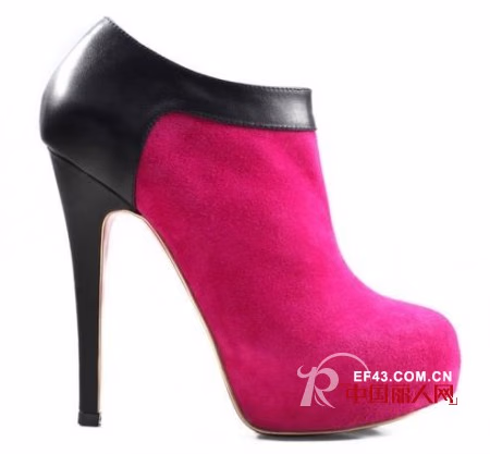 玫红绒面和黑色真皮的拼接款式,带来了不一样的穿着感受,内防水台让鞋子穿起来舒适稳当。
