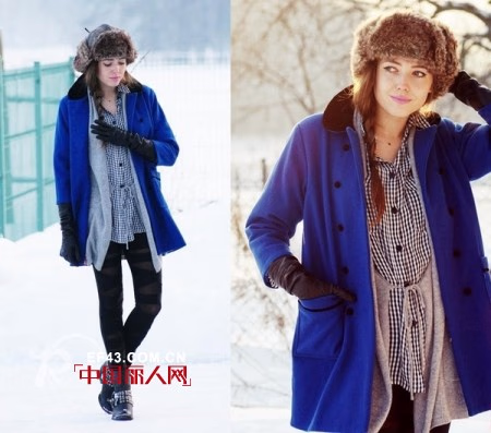 休闲的格子遇到了高贵大气的宝蓝色大衣,似乎擦出了小火花,内夹的灰色针织衫似乎起到了过渡的作用,让视觉效果更加舒适柔缓。