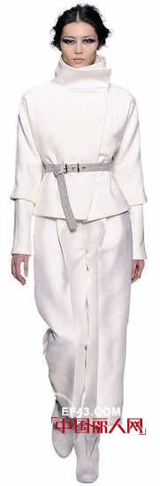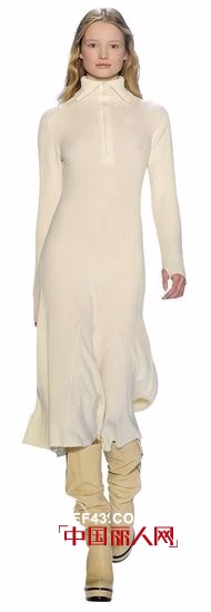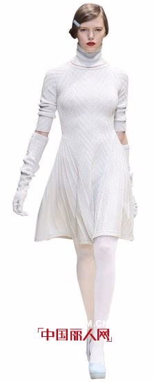 白色能反射,为任何肤色加分,柔软材质营造温暖感受。在白色的色相中,仍存有许多不同微妙变化的白,如象牙白、乳白、雪白、蛋壳白、银白⋯⋯等等,各自存在着不同的感觉,全身白色不但简单容易搭配,在冬季肯定也是很醒目的装扮,Paco Rabanne简约的白色无袖洋装,小露金色裙摆,宽版金色颈环装饰于颈项,为肌肤与服装增添亮度与华丽特质,也让全身白的装扮更为抢眼;Derek Lam麻花编织无袖毛衣搭配雪纺曳地长裙、白色厚呢大衣透过腰带勾勒身形曲线,金色扣环与鞋款呼应,Derek Lam以低调沉静的手法呈现冬日白;Alberta Ferretti、Sonia Rykiel和Lacoste以柔软材质展现无拘束的休闲感;Bill Blass则以合身俐落的剪裁呈现女性干练的一面。
