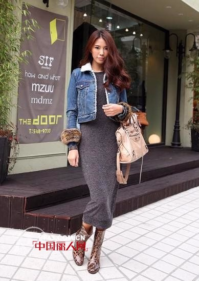 贴身长裙尽显女性柔美的身姿,牛仔外套的混搭在冬季既保暖又时髦,MM们快学习一下吧。