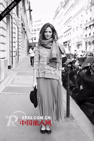 百褶长裙在冬季穿会不会觉得有点冷呢?没关系,套头毛衫帮你解决啦,还有厚重围巾的帮忙,是不是顿时暖和了呢?