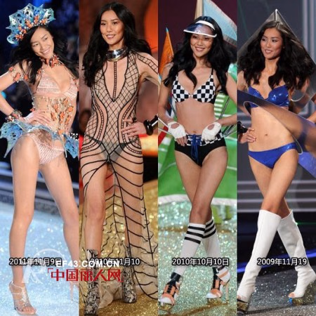 从2009年到2011年,维秘大秀上的刘雯