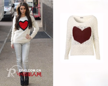 超漂亮的一款羽毛绒针织毛衣,超美的上身效果,精致的爱心印花图案在胸口,整体的搭配设计很巧妙很明亮,浅色毛衣搭配浅色牛仔裤,加上现在很流行的黑色坡跟踝靴,呈现时尚性感的女人韵味。