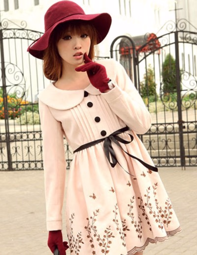 温柔的呢子连衣裙,拥有着最为细腻的韵味。淡淡的粉色仿若恋爱般的甜蜜味道,娃娃领、风琴褶、蝴蝶结一切可爱的元素都完美的相缀其上,充满了浓浓的淑女感觉。长款外套搭配最适合。