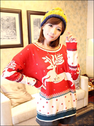 很圣诞风一款毛衣,红色很好看,是粗毛线面料,非常保暖,在冬天的时候也能穿。有很多流行元素,撞色雪花麋鹿,非常有爱,版型非常宽松,胖瘦都可以穿,搭配裙子或裤子也都可以。