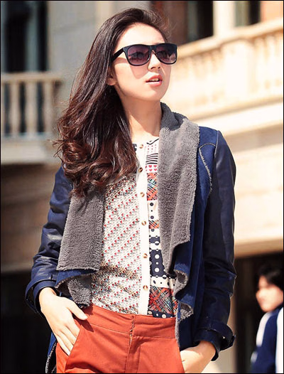 羊羔绒门襟拼接皮袖短外套,自然风格制作出最为清新的穿着状态。搭配个性十足的打底衬衣和简单的休闲裤就是至IN的时尚选择,非常有欧美风格的大牌感哦。