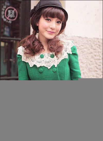 清新的绿色呢子大衣,总归给人清甜俏皮的感觉。在妞们的印象中绿色总带点俗气 傻气的感觉。其实不然,这样纯净的绿色,没有一丝的杂色,非常的干净好看,特 别养眼。领口还拼接蕾丝镂空的设计花样,娇俏玲珑的感觉脱颖而出。
