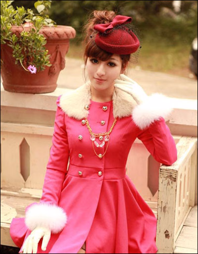 西瓜红呢子大衣,毛领设计,很温暖的说。收腰款式,大大的裙摆 穿起来很飘逸优 雅双排扣的设计显得很公主,很有复古的风格。清甜淑女的气质尽显无遗。