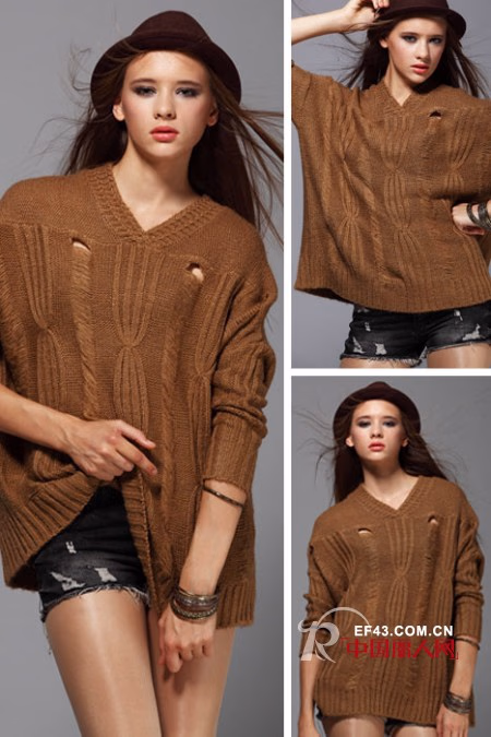 深棕色麻花宽松版毛衣,宽松的设计给人慵懒甜美感;V领口设计,让锁骨若隐若现,多了一分诱惑;简洁大方的麻花条纹,再搭配一条贴身牛仔短裤,上松下紧的搭配,立刻显瘦,尽显时尚休闲风。颇具美式西部风格的打扮,粗犷和野性的同时也带着一股潇洒的味道。