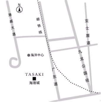 TASAKI Canton Road(海港城店)位于香港九龙尖沙咀,海港城是香港最大面积的购物中心,众星级品牌的聚集地,也是西九龙区最大商场之一。每逢星期六及星期日,都会有逾15万人次进入商场,当中包括当地居民、外地游客,及中国大陆的自由行人士。TASAKI选址于此,不免有与众著名珠宝品牌一争高下的意图;此外,品牌更希望通过此地,将TASAKI风尚辐射到整个香港。
