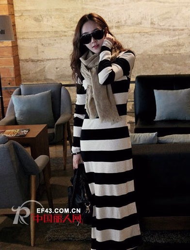 经典的黑白条纹休闲长裙,略微收腰的版型,穿在身上很显瘦呢,最主要的是宽条纹不会显得很胖,可以选择军绿色外套来搭配,休闲中带点帅气感,十分舒服利落。