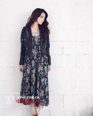 夏天的裙子只要会搭配,秋天一样可以穿。这款碎花吊带长裙,缤纷的花色浓郁的春味儿,选择黑色皮衣来搭配,是不是瞬间时髦洋气起来了呢?