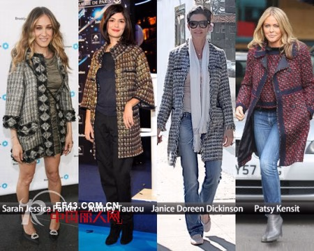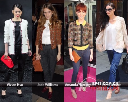 一直以来,斜纹软呢不但是CHANEL的当家招牌,在潮流风云变幻的时尚舞台亦是长青不倒,就连明星们也不得不爱它的优雅气质。从T台上规整的套装到潇洒有型却不乏女人味的短款夹克,再到简洁大气的中长款式,只要是运用了斜纹软呢,甭管它究竟是怎样的款式,就一直能够流行下去。