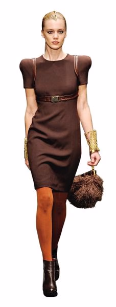 阿玛尼先生设计的宽肩套装曾风靡整个80年代,并与DISCO文化、女权主义运动一同打造了“大女人”的倒三角轮廓。然而宽肩的传统还应当追溯到文艺复兴时期的西班牙,当时无论男女都喜欢在肩部加上衬垫打造出夸张的华美气质,其第一次登上T台则是设计师Elsa Schiaparelli的创举,她将时装的重点从腰、臀移到了肩部,收小臀部,加宽垫肩,强调肩部的平直挺括,这种设计曾是二战前女装的主要趋向。