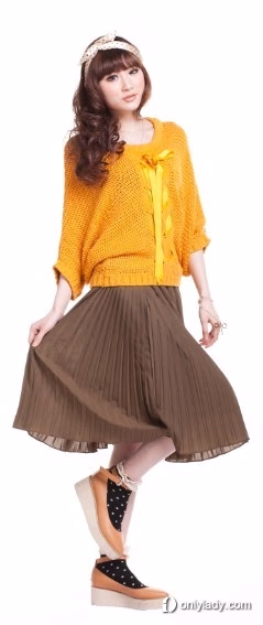 大胆的颜色,宽松的式样,是不是已忘记进入了金色的秋季?配上色差度较大的百褶裙,让你不会因为秋天而放弃挚爱的荧光色,成为四季的主流色。