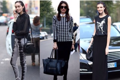 赶上了时装周,米兰的街头尽是穿着一身黑色的超模。修身的款型,利落的剪裁让超模的好身材得以展现。我们也可以从这些超模身上借鉴到一身黑的穿法。墨彩图案的印花、经典的黑白千鸟格或者深浅黑色的层叠使用可以更好地增加着装的层次感。