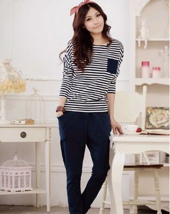 关于正流行的款型,人们往往容易持有两种极端的态度,一类人对流行不闻不问,完全不予理会,而另一类人则对流行盲目追从。小编认为,能够将流行巧妙地运用到自己的风格中,才是对待流行最正确的态度。经典的海军条纹,流行的哈伦长裤,舒适自然的格调又刚刚好与自身气质相符,这样才是穿衣打扮的高境界哦。