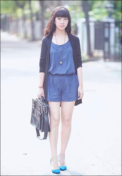连体短裤早秋天气依然很流行,可以选择长外套或是长开衫来搭配,绝对能够抵抗温差,这一身看起来就很温婉亲和呢。