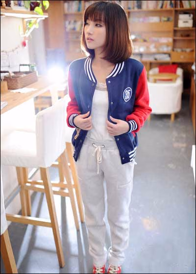 运动外套,休闲款式,简单实用,上身很显气质哦。蓝红配色清新好看,条纹圆领更显时尚感,选择休闲裤来搭配,透着浓浓的帅气味道。